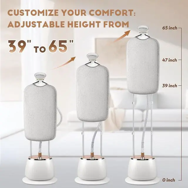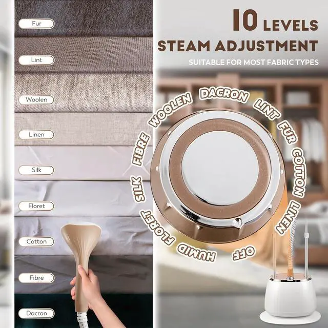 [UNIVERSAL FABRIC COMPATIBILITY]: Featuring 10 adjustable steam levels, this steamer is suitable for all fabric types. From delicate shirts to heavy coats, curtains, and even upholstery, it effectively removes wrinkles from a wide range of materials.