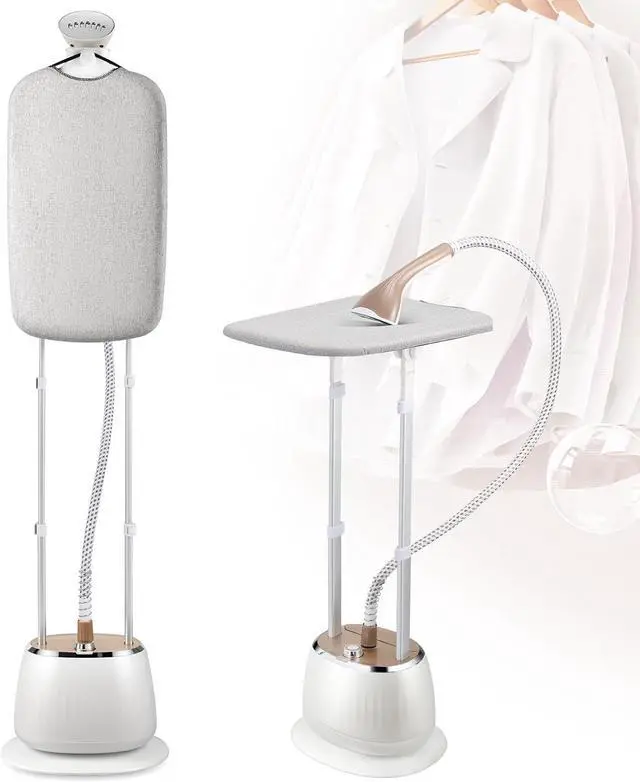 [VERSATILE 3-IN-1 DESIGN]: Switch effortlessly between hanging, flat, and diagonal ironing. The telescopic pole, detachable ironing board, and included garment hanger let you tackle dresses, suits, curtains, and upholstery with professional precision.