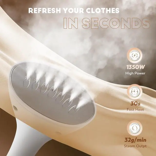 [1800W HIGH-POWER PERFORMANCE]: With a 1800W motor and a ten-hole heat insulation sprinkler, this steamer delivers powerful, even steam distribution for quick and efficient wrinkle removal.