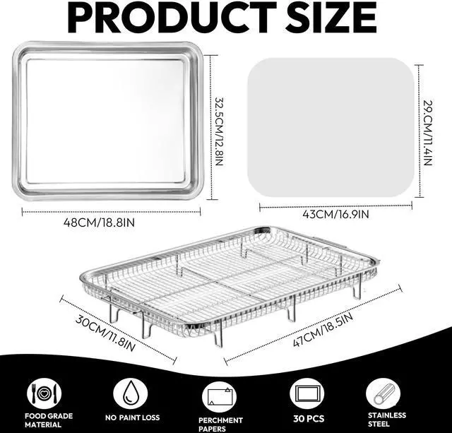 Our oven crisp baking tray basket measuring 18.8" × 12.8" inches, allows you to cook more food at once from crispy fried chicken to roasted vegetables. Whether it's family dinners or entertaining guests, this air fryer crisper tray makes meal faster and more efficient. Save time with our dishwasher-safe design that keeps your rack spotless.