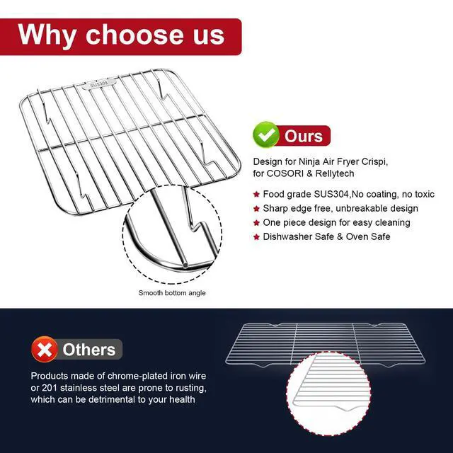 2PCS Crisper Rack for Ninja Crispi Air Fryer FN101, for COSORI Rellytech Crispi Accessories, Grill Racks for Ninja Crispi Replacement Parts, Stackable Rack, Stainless Steel SUS304