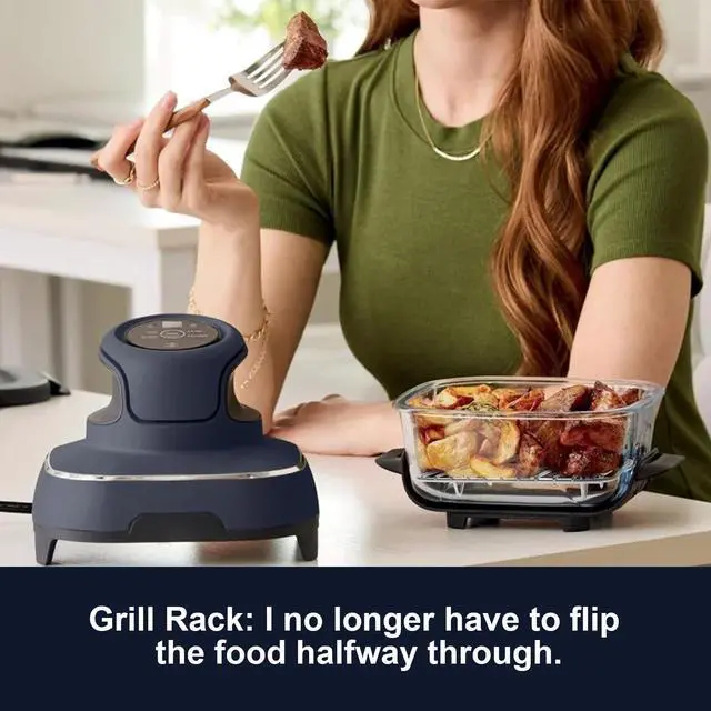 Solves Undercooked Food Bottoms: Elevate food with the grill in the air fryer container, allowing hot air to circulate freely around all sides (top, bottom, left, right) for even heating, helping you create perfect grilled dishes