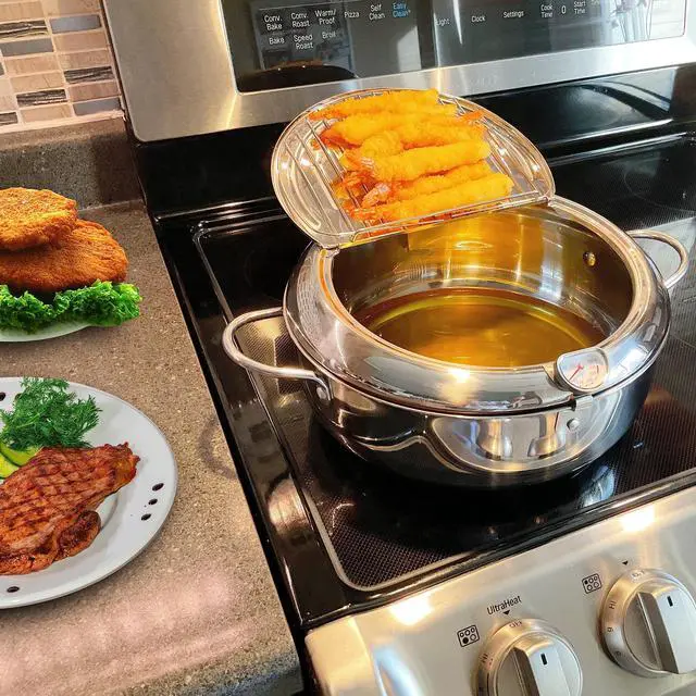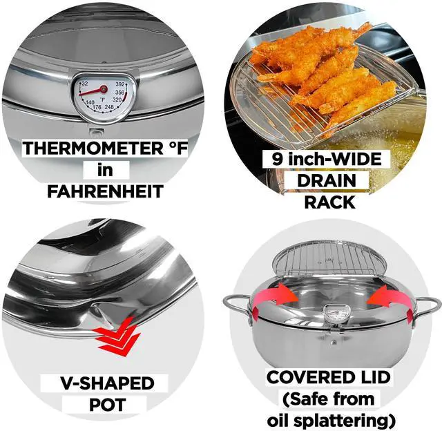 Saltlas fryer pot comes with a Fahrenheit thermometer, allowing you to easily monitor the temperature while frying. The red mark on the thermometer helps indicate if the temperature is maintained accurately.