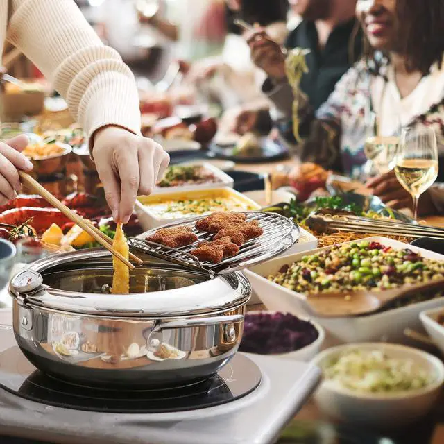 Remove excess oil from fried food effortlessly with our fryer pot's roomy oil drain rack. Its generous space accommodates a large amount of food at once, saving you time and eliminating the need for multiple batches. Bid farewell to the hassle of paper towels or extra dishes for oil removal and enjoy the convenience of our ample oil drain rack.