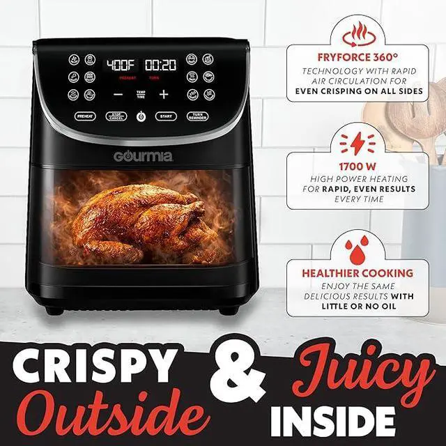 Powerful Countertop Performance FryForce 360° Technology circulates heated air for evenly cooked, crispy results with little to no oil. Adjustable 90°F400°F temperature control lets you dial in the perfect level of crisp for fries, wings, vegetables, and more.
