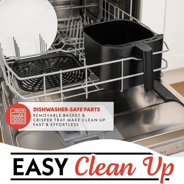 Easy Cleanup Design - Nonstick basket and crisper tray are top-rack dishwasher safe for fast and convenient cleanup after every meal.
