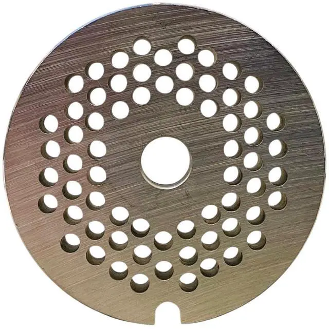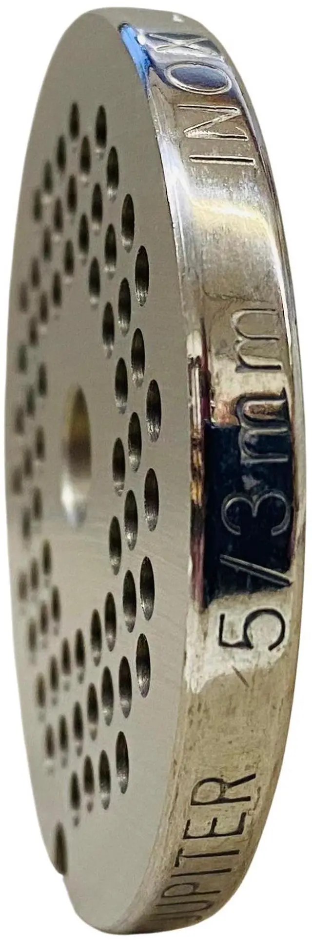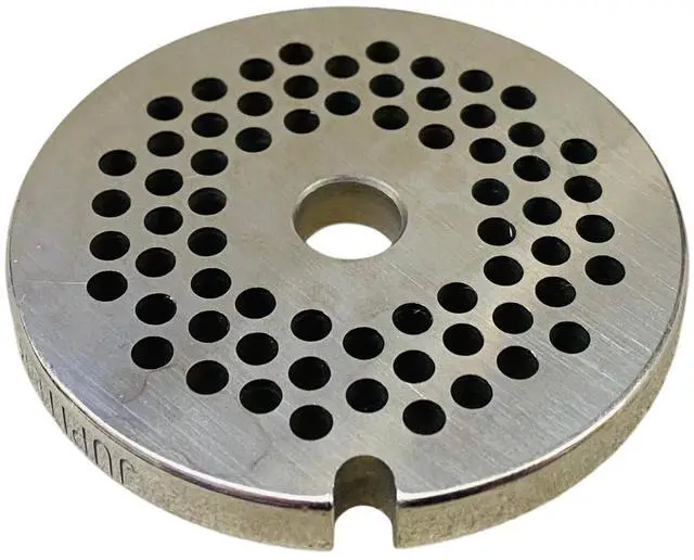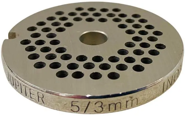 Jupiter® part 476100. Germanengineered for accuracy and durability, this finegrind plate is ideal for producing smooth textures used in spreads, pâtés, bratwurst, baby food, and finely ground meats.
