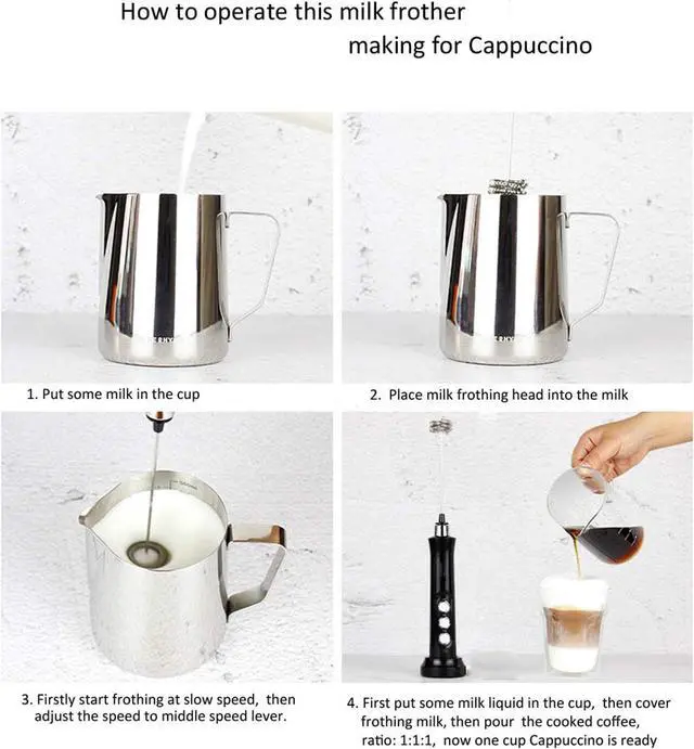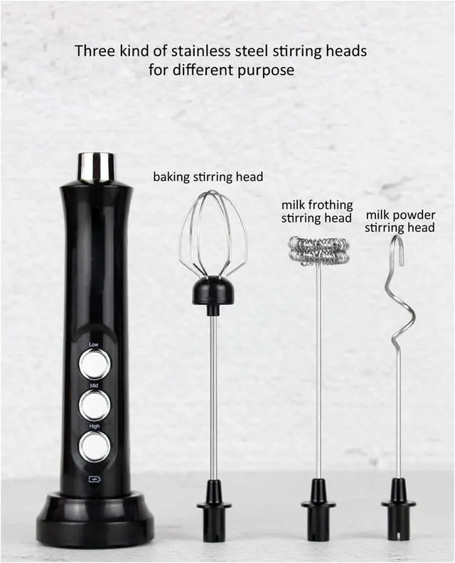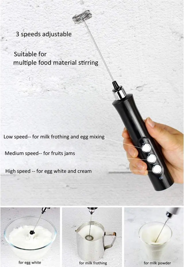 Various Usage: This handheld milk frother is equipped with 3 types of stainless steel whisks to meet a variety need of kitchen use scenaries like, spring whisk: it can be used to stir micro bubble food such as coffee milk, protein powder drinks and beverage, etc.; balloon whisk: designed for whipping cream and egg white; hook whisk: main for olive oil, milk powder, supplementary food, etc.