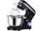 stand mixer comes with three mixing accessories: whisk, dough hook, mixing beater.The splash guard with access hatch helps add ingredients without making a mess.