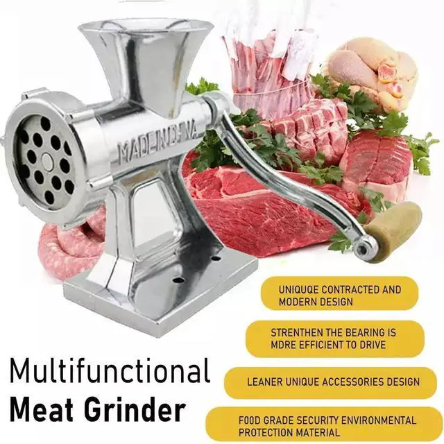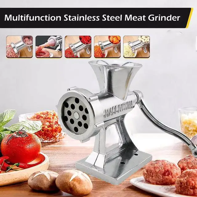 WIDE APPLICATION- The functions of this meat grinder manual are multiple, widely used to grinding various of meat, vegetables and nuts, including pork, beef, chicken, peppers, garlic, peanuts, etc. Suitable for many occasions such as restaurants, homes, grocery stores, etc.