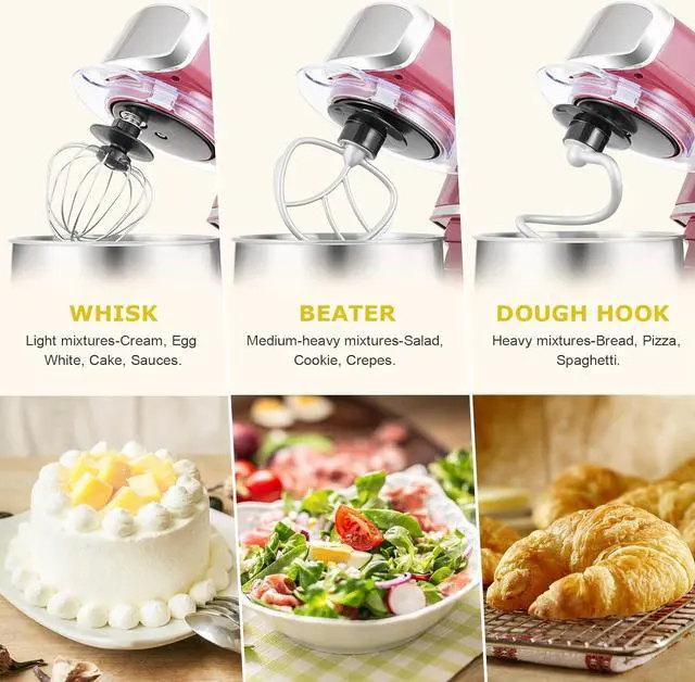 Upgraded Multi Attachments - Aluminium dough hook and flat beater, stainless steel whisk are easy to attach, using upgraded material, more sturdy and durable. There is a gasket at the top joint to prevent food residue from splashing into the joint to make cleaning more convenient.