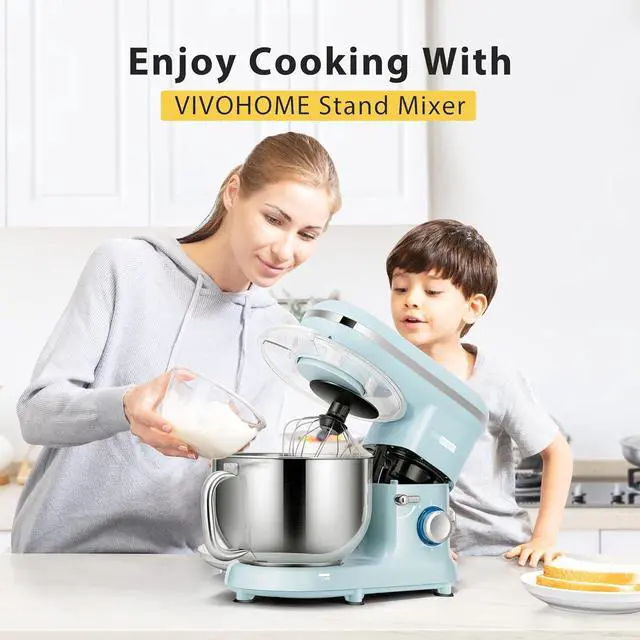 POWERFUL MOTOR - High-performance 660W motor finishes kneading and mixing quickly and thoroughly than human hands; Handy 10-speed control with a pulse function can satisfy precise needs for various mixing tasks; Heavy-duty metal gears lead to stable and quiet working; Features 2 heat vents outlets, the VIVOHOME mixer has a rapid heat dissipation for long service life