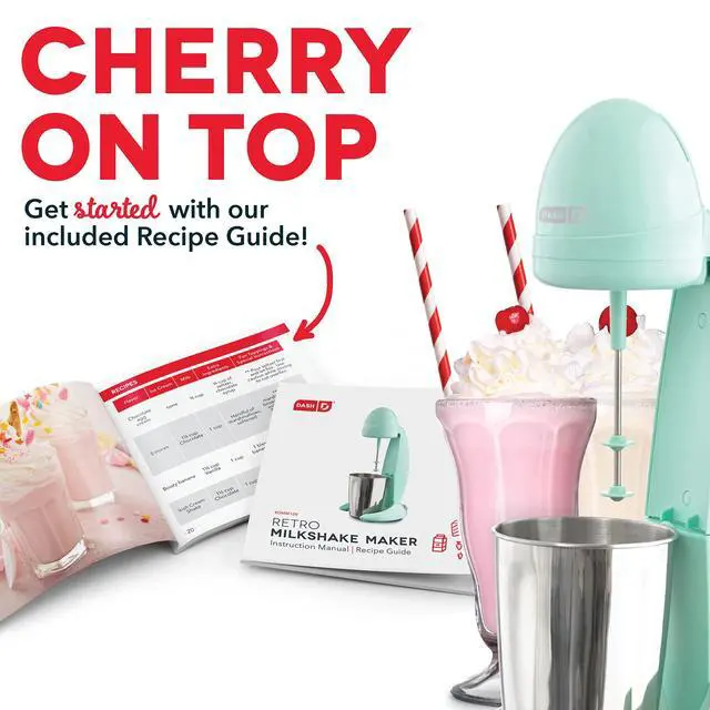 CLASSIC RETRO MILKSHAKES: Both fun and easy to use, the Dash Retro Milkshake Maker brings the old-time ice cream parlor right to the kitchen - perfect for making milkshakes, malted milks, healthy shakes, and all your favorite creamy drinks at home.