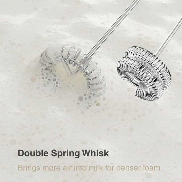 Looking for an efficient milk frother? Our milk frother comes equipped with a single and a double whisk head, making it the ideal tool for coffee enthusiasts. With the ability to whip up frothy milk in mere seconds