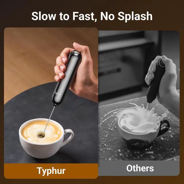 The milk frother features a stepless speed control design. You can adjust the speed by pressing the top button; the deeper you press, the higher the speed.
