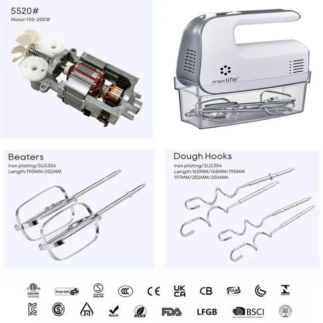 Revolutionize your kitchen with the Max Life Hand Mixer ML-6617, a game-changer in mixing and baking. Unlike competitors that overstate power for marketing, our true 150W motor delivers unmatched efficiency, outperforming products labeled with higher wattages. Thanks to a sophisticated cooling system, this mixer maintains consistent power, allowing for longer use without compromising performance or energy efficiency. Certified by ETL, you can trust the quality and accuracy of our product specifications.