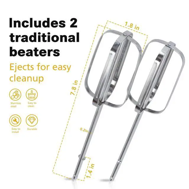 Hand mixer beaters is an essential culinary tool for the dedicated cook. With more power than previous models and efficiently designed beaters, it speeds any mixing job.