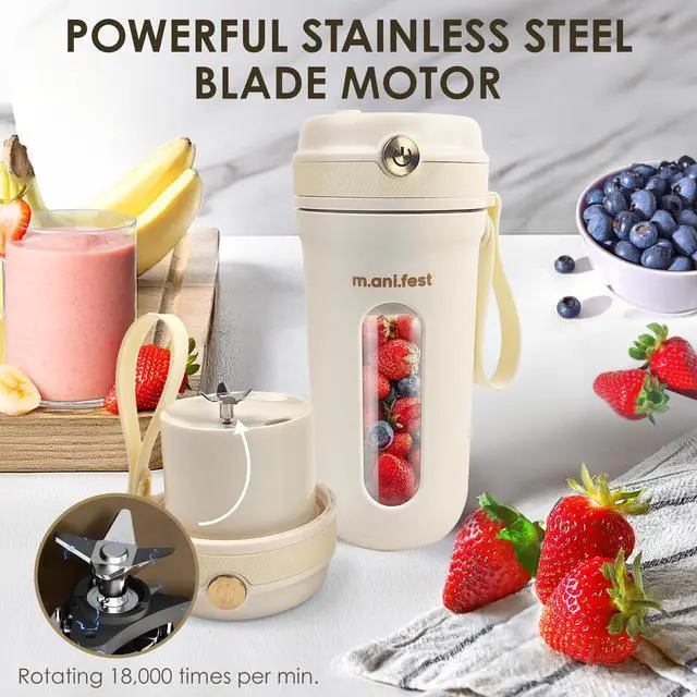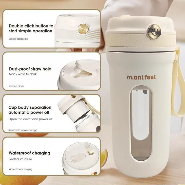 Discover the practicality of the M.ani.fest 350ml Portable Juicer Cup a compact blender built for your active schedule. This USB rechargeable mini blender features a durable Type-C port for fast charging and a one-button blending system for effortless use. The 350ml capacity makes it ideal for preparing single-serve smoothies, protein shakes, and juices. Designed with portability in mind, this lightweight smoothie maker fits easily in your bag, making it great for travel, gym, or work. Its sturdy white plastic build ensures ease of cleaning and a modern look. Whether mixing fruits, vegetables, or powders, this blender offers consistent blending performance with every use.