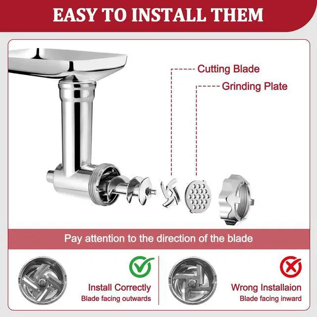 Electric Meat Grinder fits all KitchenAid vertical mixers and Cuisinart vertical mixer SM-50 series (SM-50BC,SM-50R,SM-50TQ,SM-50BL,SM-50BK).Simply connect the hachoir a viande to the power hub and let food grinder do all the work,providing you with an excellent food processing experience.Its made of high-quality metal and is more durable than Plastic Grinder.Kitchenaid attachment is a great kitchen aid for cooking enthusiasts and homemakers