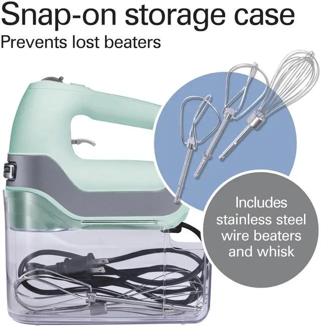5-Speed Electric Hand Mixer with Snap-On Storage Case, QuickBurst, Stainless Steel Twisted Wire Beaters and Whisk, Mint (62658)
