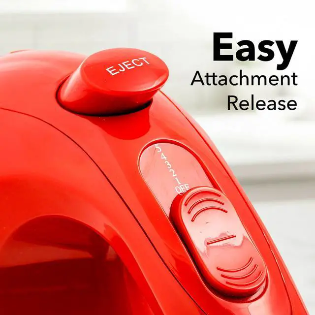 Beater Eject button allows you to safely remove the whisk beaters with no hassle.