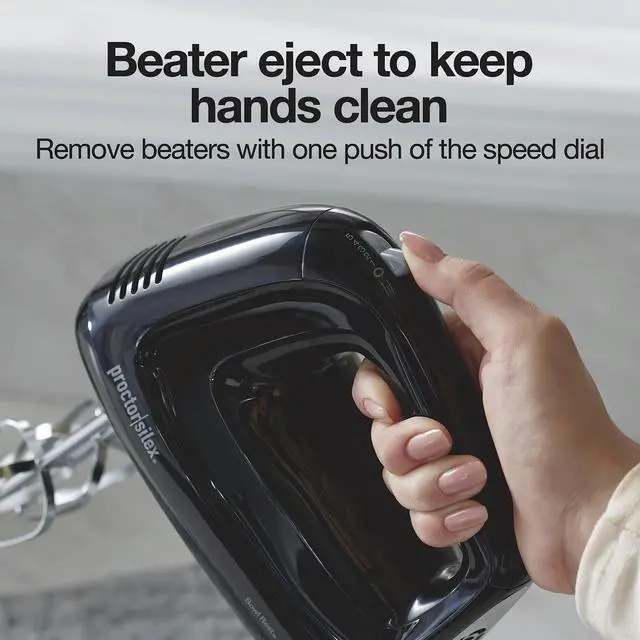 The electric hand mixer has beater eject that lets you remove the beaters with one push of the speed dial.