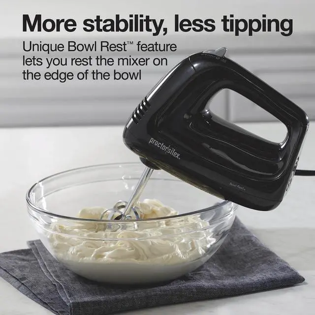 Whether you're mixing ingredients for a cake or beating butter for the frosting, the Proctor Silex 5 Speed Hand Mixer gives you the versatility to handle every mixing job with ease.
