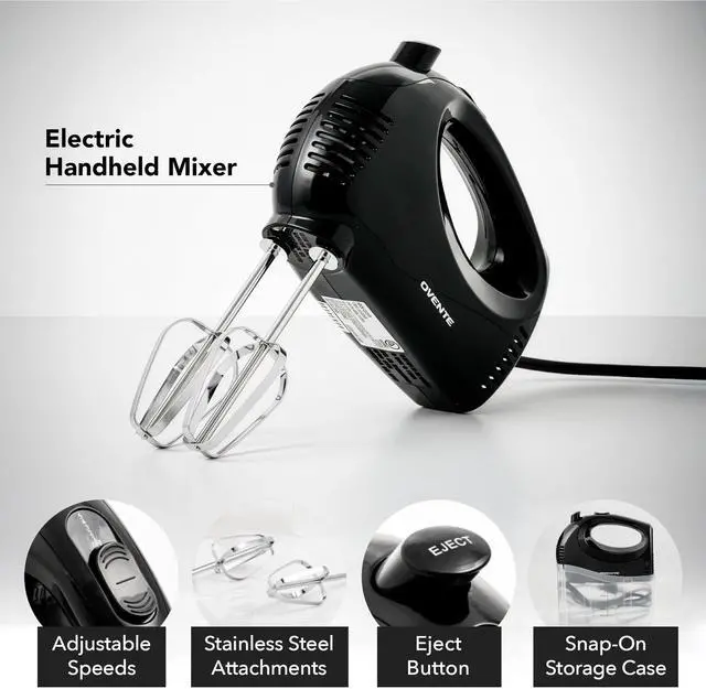 • MIX & WHIP INGREDIENTS WITH EASE Equipped with 150 watts of motor power and 2 stainless steel whisk beater attachments, this hand mixer effortlessly mixes and whips ingredients for your favorite recipes. Whether you're incorporating heavy ingredients like nuts into cookie dough or making light, fluffy meringue for a pie, this hand mixer blends ingredients seamlessly with its high-quality whisk beaters.