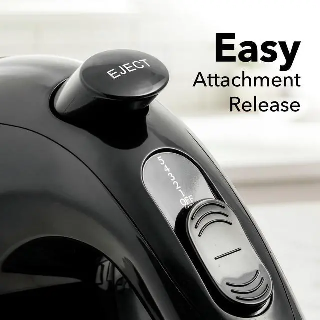 Beater Eject button allows you to safely remove the whisk beaters with no hassle.