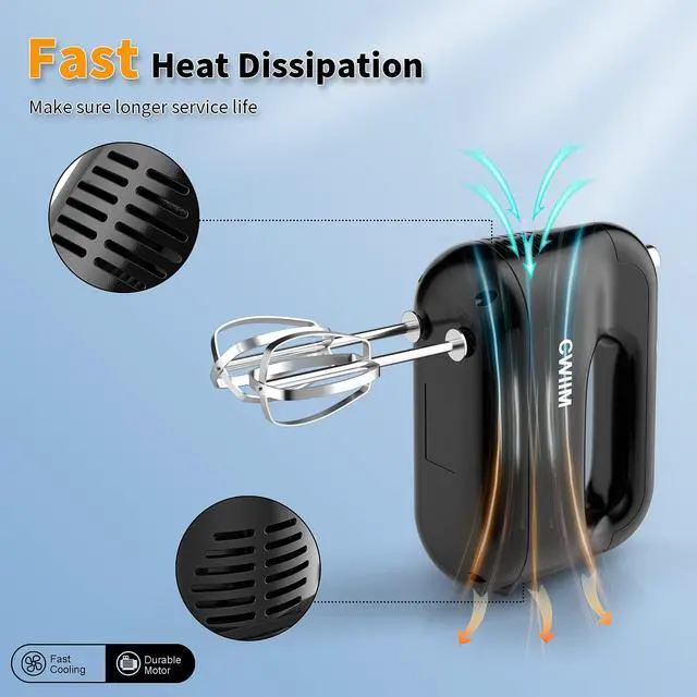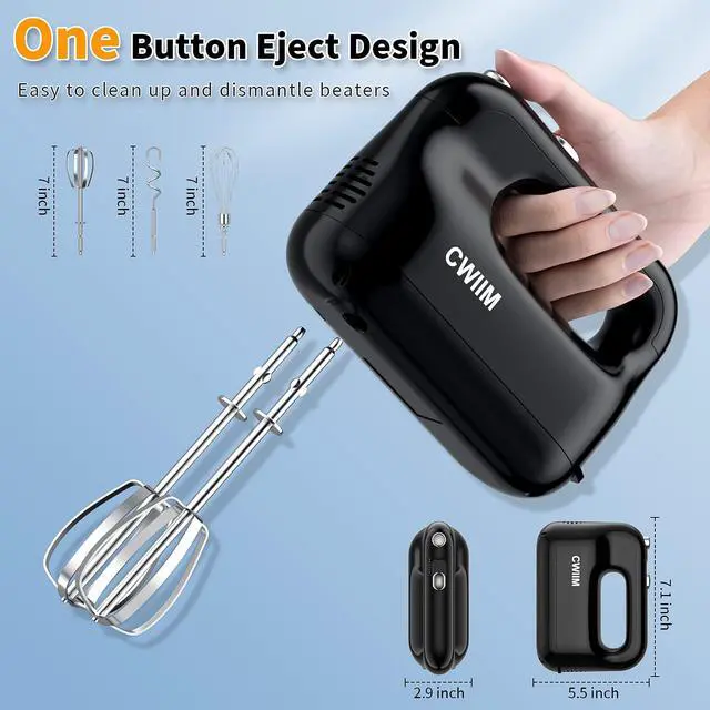 CWIIM Hand Mixer, Portable Handheld Mixer with Stainless Steel Attachments