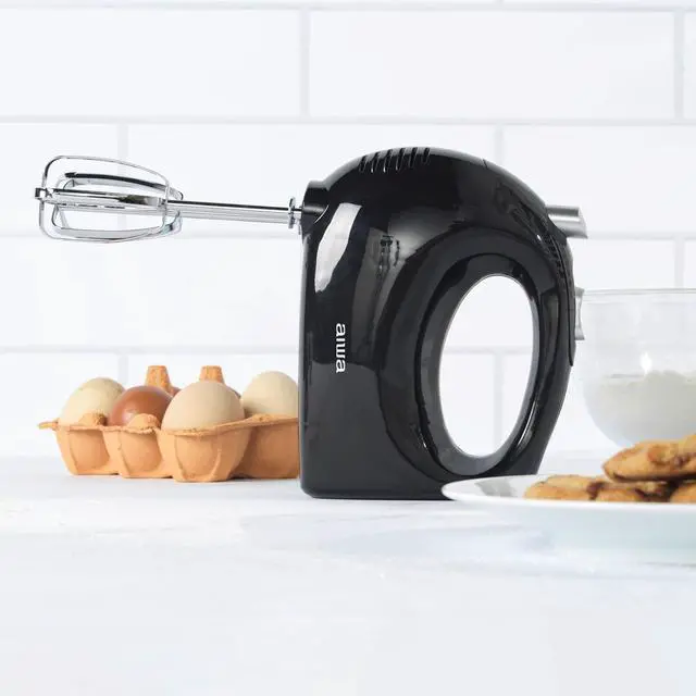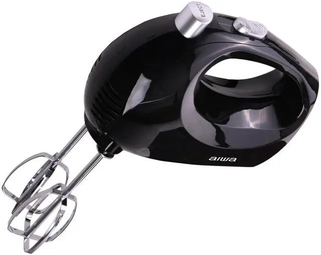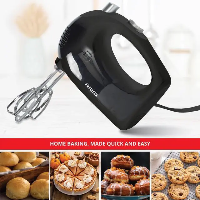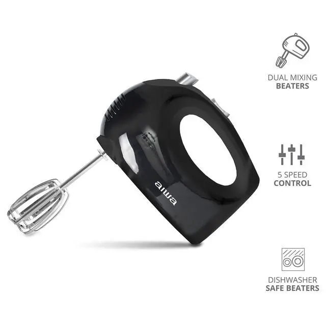 The AIWA 5-Speed Hand Mixer in Black combines reliable performance with a clean, modern look that fits seamlessly into any kitchen. Powered by a 150-watt electric motor, this handheld mixer is ideal for mixing batters, whipping cream, blending ingredients, and handling everyday baking tasks. With five speed settings, you can adjust the mixing power to match your recipe, from gentle stirring to faster whipping. The dual stainless steel beaters are detachable and dishwasher safe, making cleanup fast and hassle-free after each use. Designed for comfort and convenience, this mixer features a lightweight, ergonomic handle for easy control and reduced hand fatigue. Its compact size allows for simple storage, making it perfect for small kitchens, apartments, or everyday home use. A practical and stylish addition to any kitchen, the AIWA hand mixer delivers dependable results in a sleek black finish.