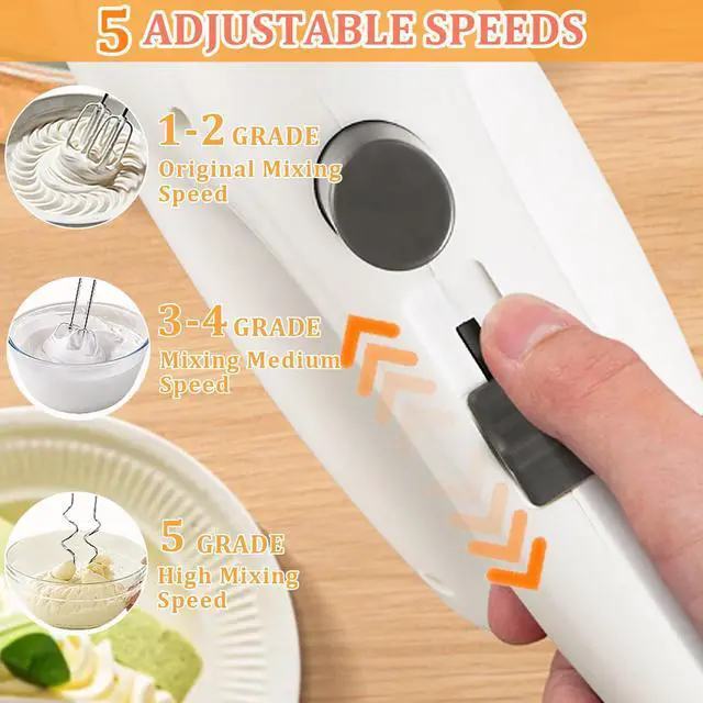 300W & 5-Speed Adjustment: This Katroiy electric hand mixer is specially designed for baking enthusiasts, featuring a powerful 300W motor that delivers ample power for truly efficient mixing. Its five-speed adjustment design effortlessly handles thick batters, whipped cream, dough, milkshakes, and other baking ingredients!
