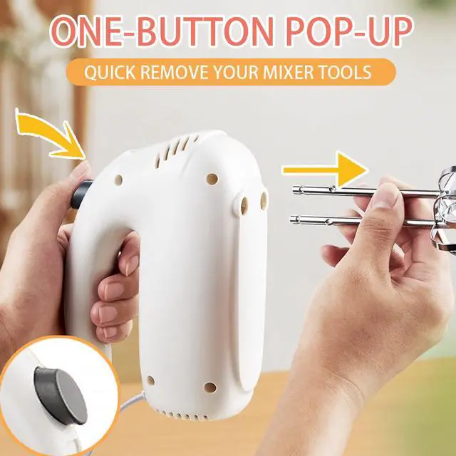 One-Touch Release Design & Easy Cleaning: The one-touch release button on the back of the electric whisk allows you to swap attachments in seconds for different tasks, while also simplifying storage and cleaning. Note: Press the button to release attachments only when the cake beater is not in operation.