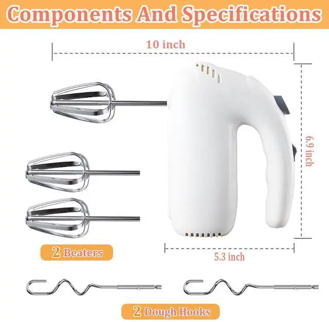 Exceptional Quality: This hand mixer electric handheld features a sturdy body, high-quality motor, and dual top and bottom ventilation ports, enabling it to handle extended mixing tasks. Best of all, the stainless steel mixing attachments are dishwasher-safe for hands-free cleaning!