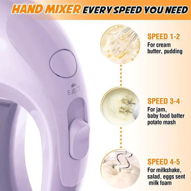 Handmixer Electric Handheld - 7 Speed Portable Kitchen Mixer Electric with 5 Stainless Steel Accessories Whisk, Food Beater for Whipping Mixing Cookies Cakes Home (CX6613-VT)