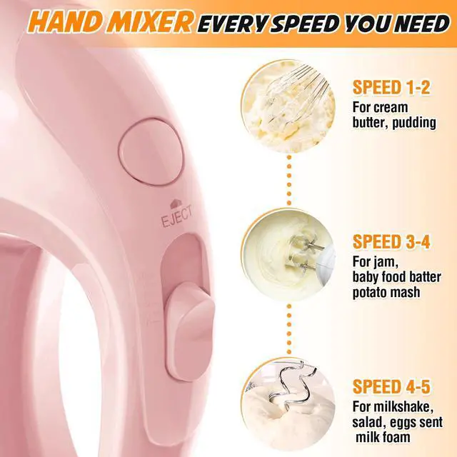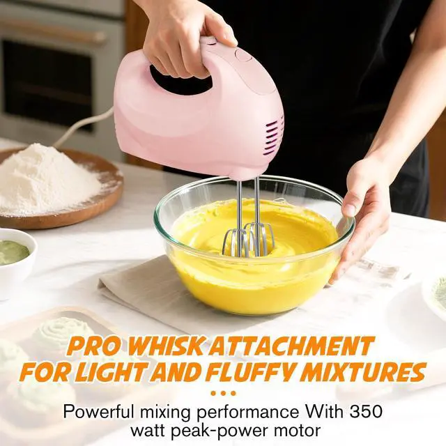 Handmixer Electric Handheld - 7 Speed Portable Kitchen Mixer Electric with 5 Stainless Steel Accessories Whisk, Food Beater for Whipping Mixing Cookies Cakes Home (CX6613-PK)