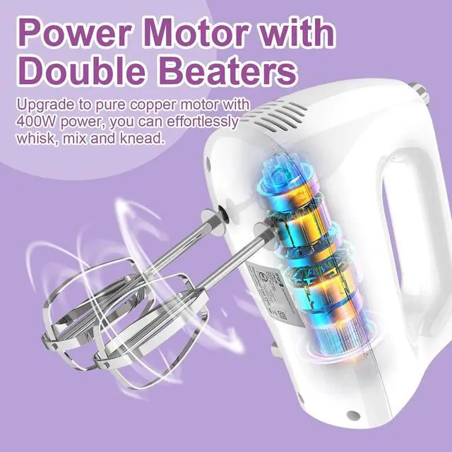 The hand mixer with interlock system can keep the attachments to whisks, mixes and kneads for added your safety and security.