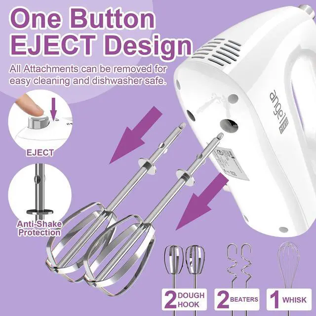 And one button eject for removing the accessories easily.(Recommendation: For safety, Adjust the speed to ""0""to turn off the mixer and press down the eject button before taking out the accessories.)