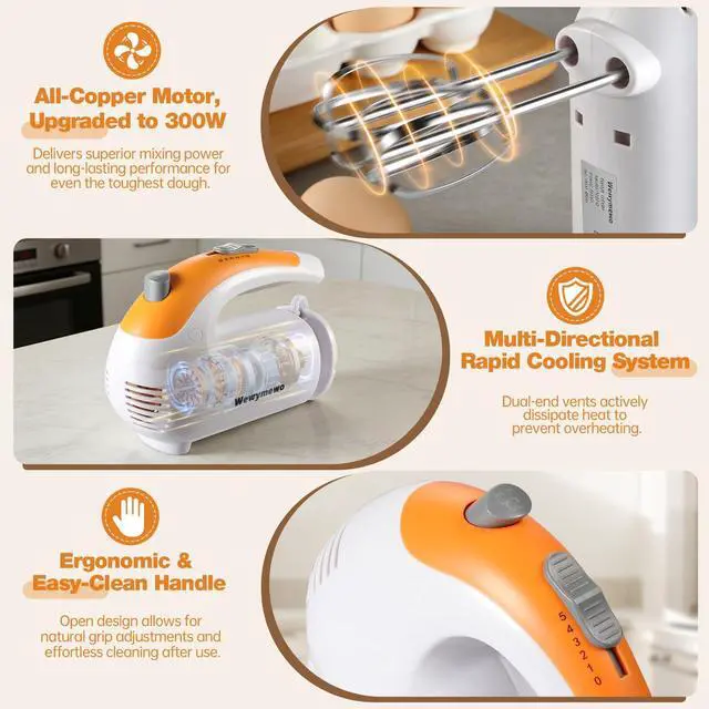 Dual-Directional CoolingDual-circulation system promotes multi-directional airflow for rapid heat dissipation. This design extends the life of your electric whisk and ensures reliable performanceeven during extended use.