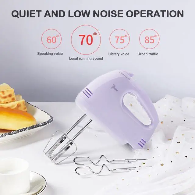 Handmixer Electric Handheld - 7 Speed Portable Kitchen Mixer Electric with 5 Stainless Steel Accessories Whisk, Food Beater for Whipping Mixing Cookies Cakes Eggs, Pueple