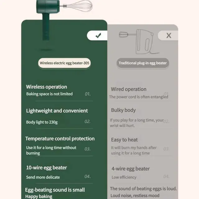 You love baking, but you hate the cord thats always too short, the beaters that are hard to clean, and the guesswork of which speed? This cordless hand mixer was made for home cooks who want freedom, simplicity, and reliable results.