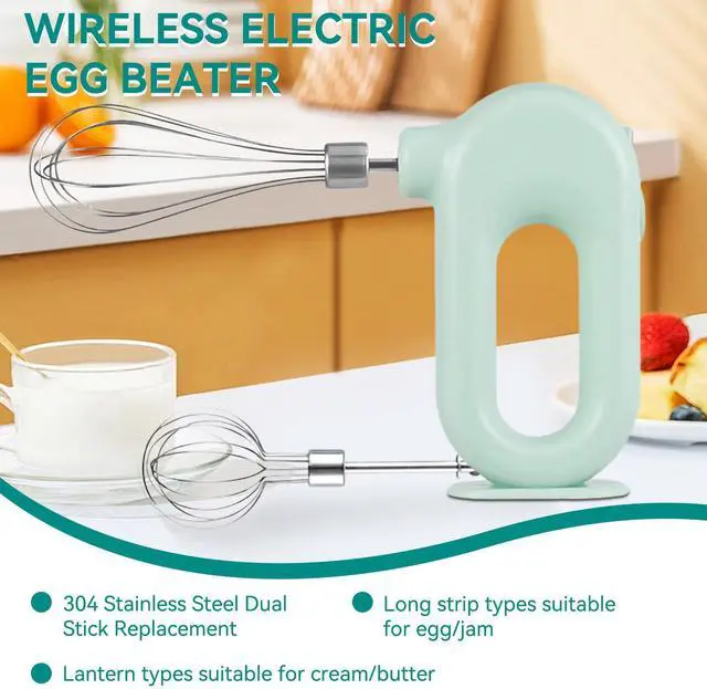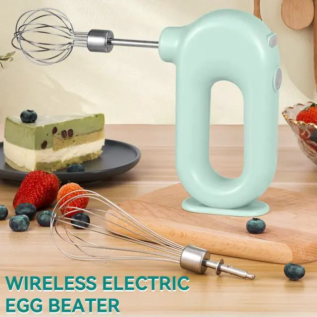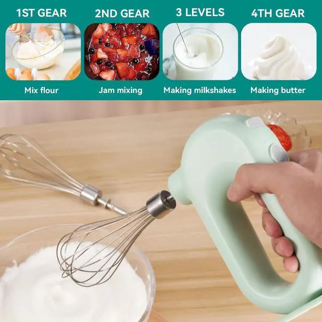 Green Cordless Hand Mixer, Handheld Electric Whisk with 4 Speed Modes, Portable Hand Held Egg Beater with 2 Detachable Stir Whisks and Egg Separator