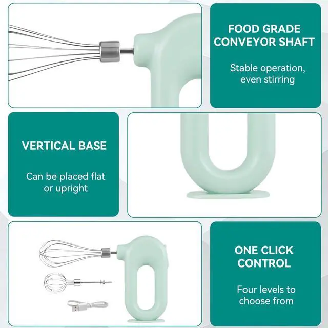 Four-speed Adjustable: The electric hand mixer whisk wireless rechargeable handheld egg beater has four speed adjustment to meet your different needs. Clear gear indication, the first slow speed is suitable for mixing/blending/mixing, the second low speed is suitable for seasoning/jam/batter, the third medium speed is suitable for complementary food/milkshake/whole egg, and the fourth high speed is suitable for cream/egg white/butter