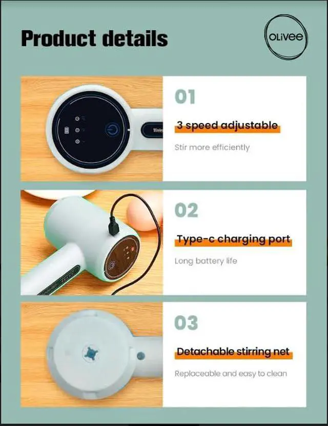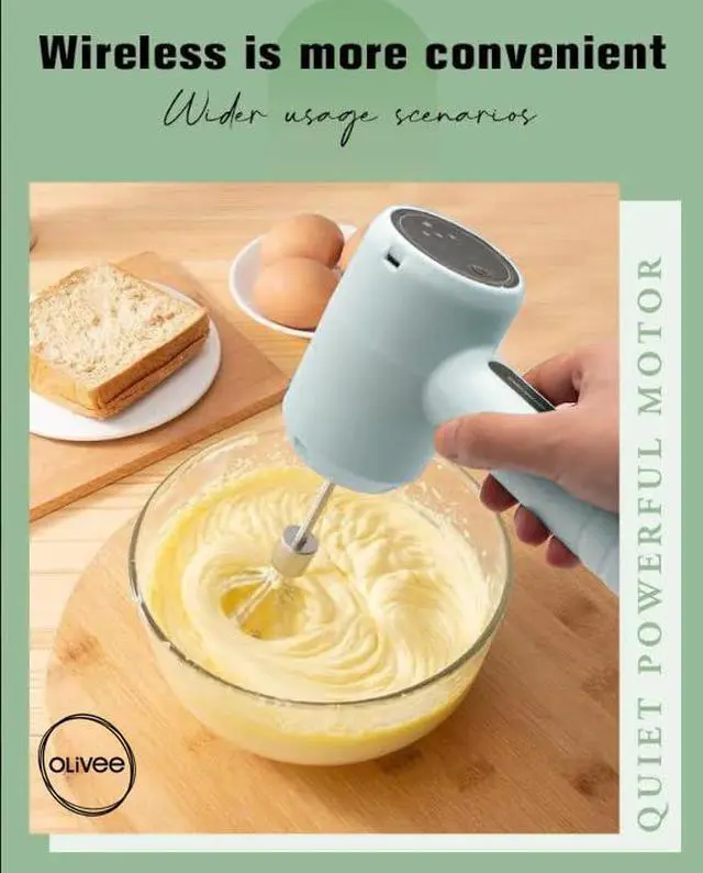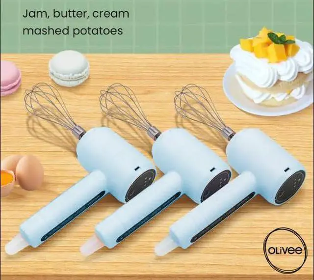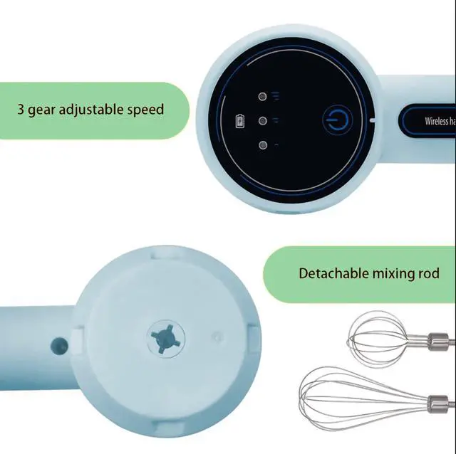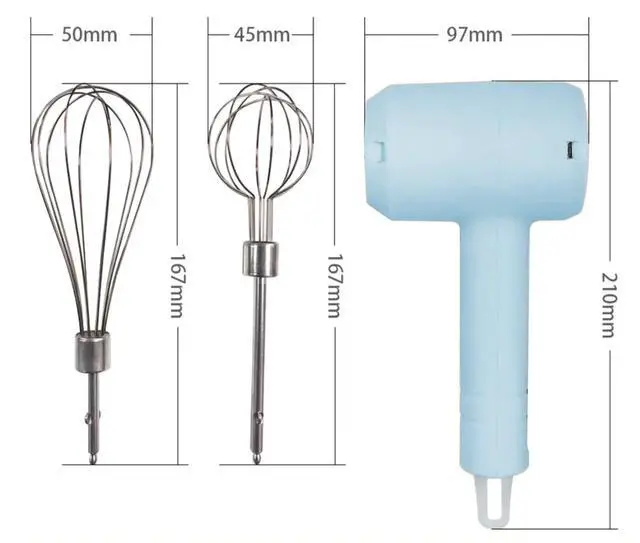 USB-rechargeable Electric Handheld Mixer and Egg Beater. Perfect for baking, whisking, whipping, sauces, frostings, jams, and more! - Handheld, comfortable grip - Material: Food Grade ABS - 2 whisk attachments - 3 mixing speeds - Battery: high capacity rechargeable - 5V voltage - Comes with USB charging cord, 2 whisk attachments, and egg white net.