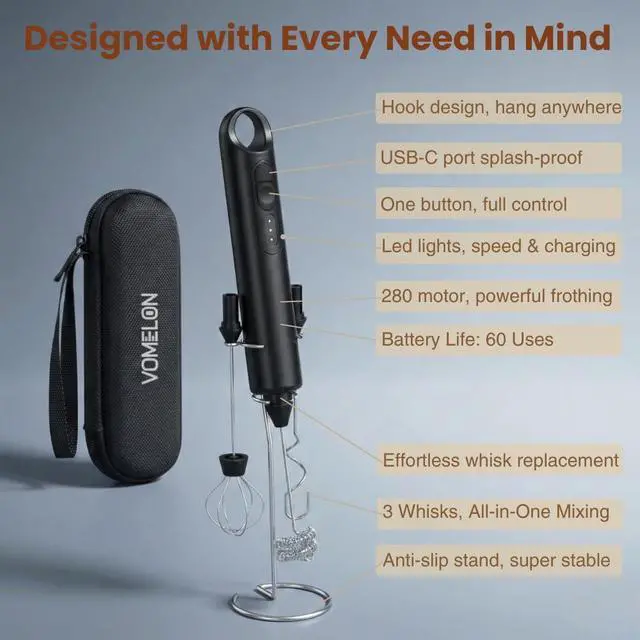 ![Main image of Rechargeable Milk Frother Handheld 3 Speed Coffee Foamer [3 Whisk] Electric Drink Mixer for Latte, Cappuccino, Coffee, Eggs, Hot Chocolate, Protein Black](https://c1.neweggimages.com/productimage/nb640/C6EHD2604260EE03787.jpg)