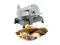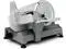 Rubber feet secure the slicer to the work surface and a double control on-off switch is built in for added safety. A blade sharpener, a tool for easy blade removal and a serving tray are included.
