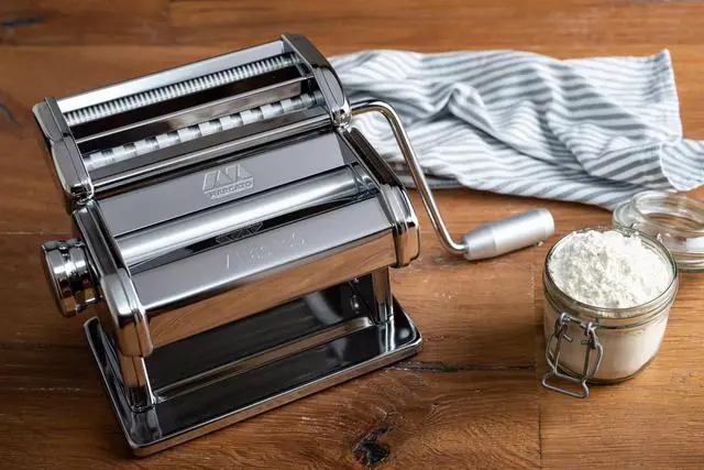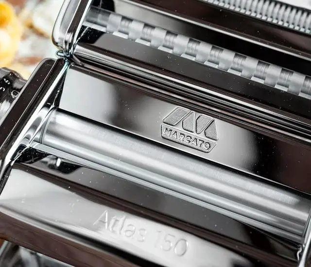 With Atlas 150 you can easily make 3 pasta shapes, lasagne, fettuccine, and tagliolini. The adjustment dial easily controls the dough thickness and rolls homemade pasta dough evenly for a consistent texture, cook time and taste. Roll the dough up to 150 mm wide and quickly choose from 10 different thickness settings, between a paper-thin 0.5 mm to 4.8 mm, to personalize pasta on the fly to each recipe. The Atlas Pasta Machine is equipped to attach a Pasta Drive motor or any of 12 pasta cutting accessories that are sold separately.