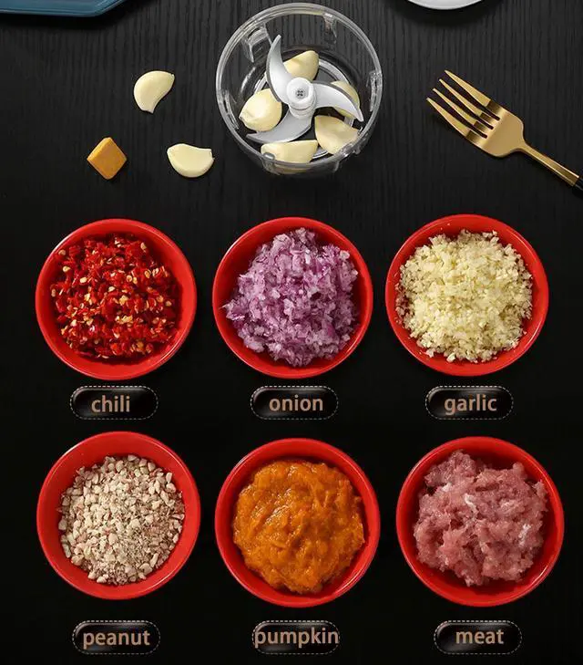 This mini food chopper is a multi-function gadget,it could process many ingredients such as garlic, ginger, chili, onions, veggies, some kinds of nuts, even small pieces of meat.Free your hands and save your time. which is very suitable for traveling, family outdoor meals, camping, or other outdoor.