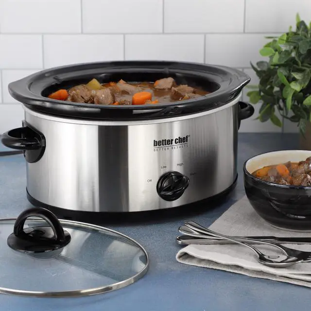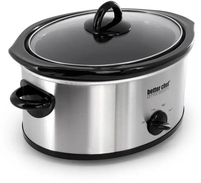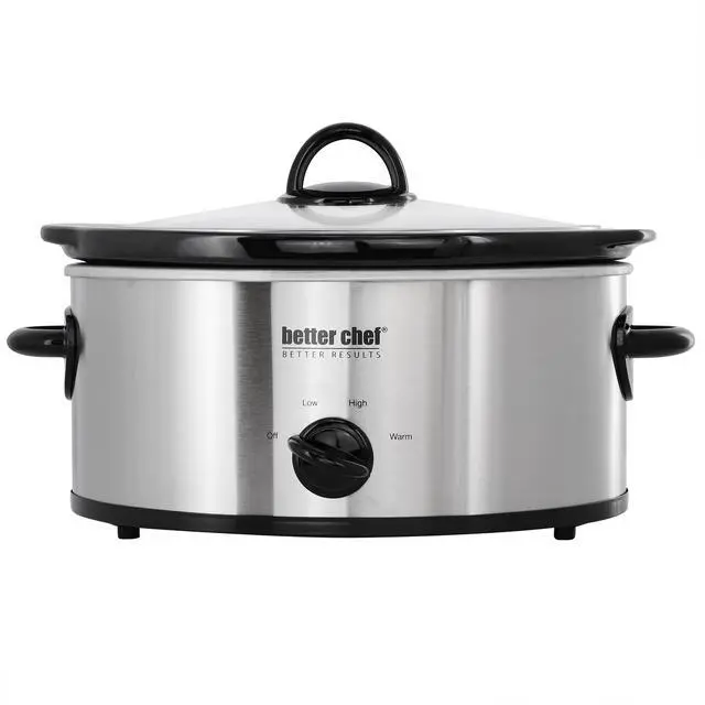 Bring effortless, home-cooked meals to your table with the Better Chef 3-Quart Slow Cooker with Removable Stoneware Crock. Designed for both convenience and style, this compact slow cooker features a sleek metallic silver stainless steel exterior that looks great in any kitchen while delivering reliable performance. The oval-shaped design is ideal for cooking roasts, poultry, soups, stews, and casseroles, making it a versatile choice for everyday meals or special occasions. With thermostatic control, you can truly set it and forget it, knowing your food will cook evenly and safely.