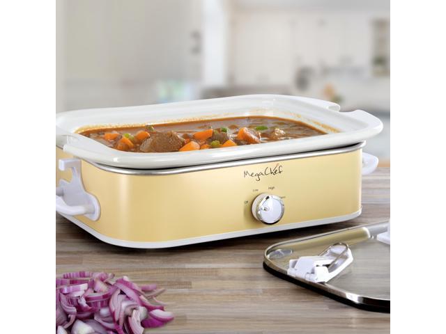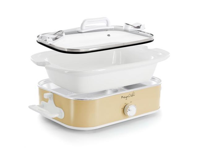 MegaChef 3.5 Quart Casserole Slow Cooker with 3 Temperature Settings in Cream
